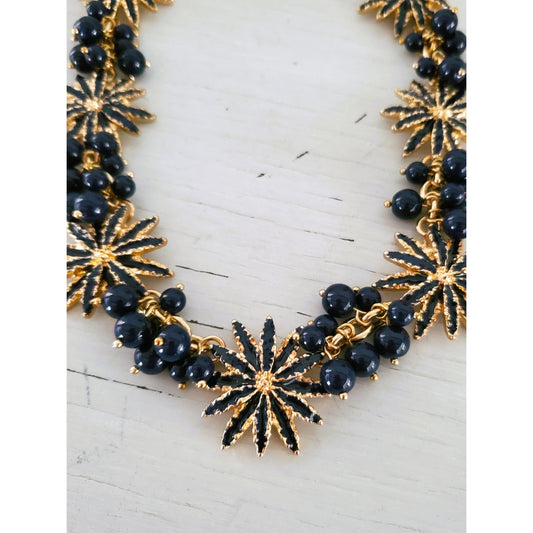 Talbots Navy Blue & Gold Tone Beaded Enamel Starburst Statement Necklace