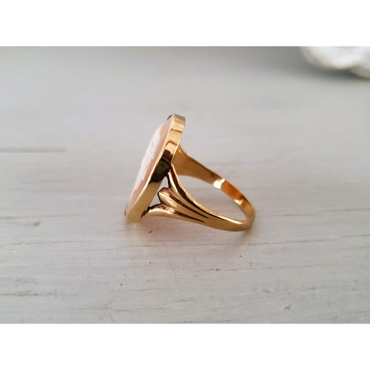 Vintage 10K Gold Cameo Shell Victorian Lady Ring