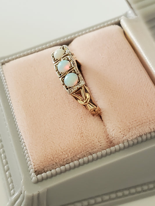 Beautiful Victorian Art Deco Filigree Opal Ring - 14K Gold
