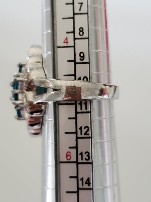 Blue Stone Sterling Silver Cluster Cocktail Ring