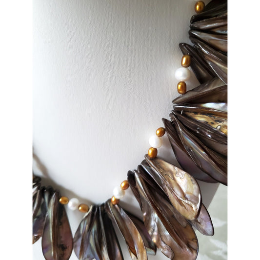 Beautiful Brown Shell and Fresh Water Pearl Necklace