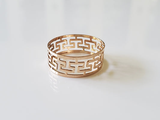 Delicate 14K Gold Greek Key Meander Open Work 7mm Ring