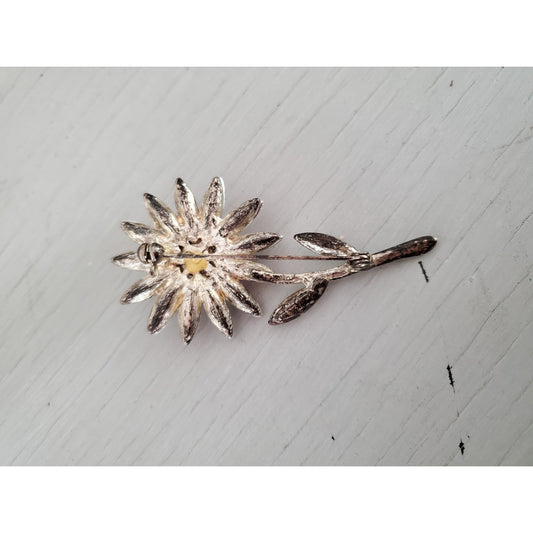 Vintage Pastel Rhinestone Daisy Brooch Pin
