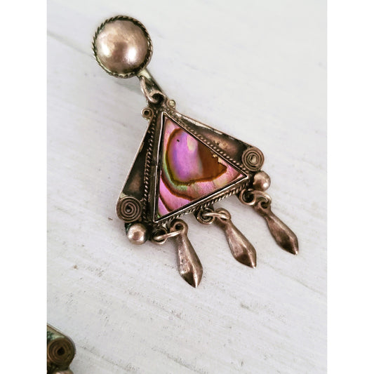 Vintage Sterling Silver Mother of Pearl Dangle Screw On Earrings