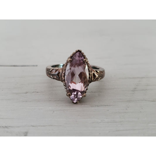 Vintage Sterling Silver Marquise Cut Purple Amethyst Ring