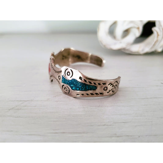 Vintage Sterling Silver Navajo Turquoise and Coral Cuff Braclet