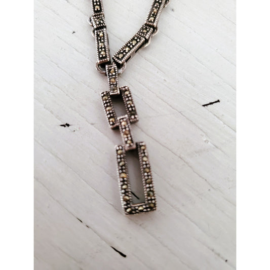 Modernist Sterling Silver Marcasite Lariat Necklace