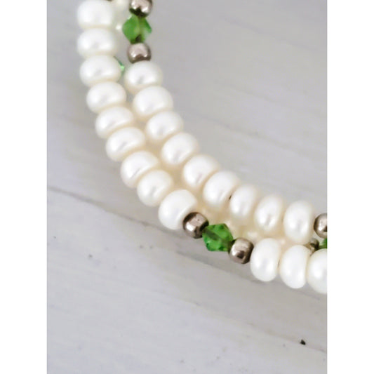 Natural Cultured Pearl and Green Bead Wrap Bracelet