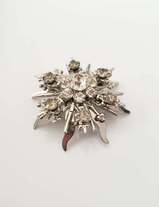 Vintage Snowflake Clear Rhinestone Brooch Lot of 2