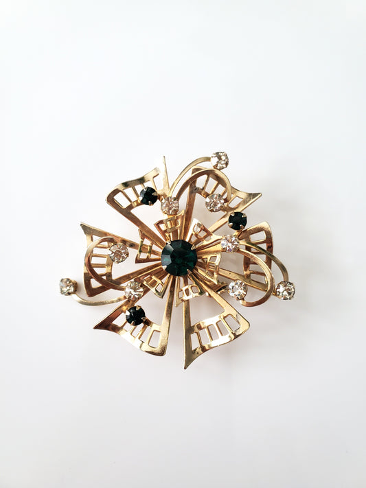 Vintage Green and Clear Rhinestone Wreath Pin Brooch