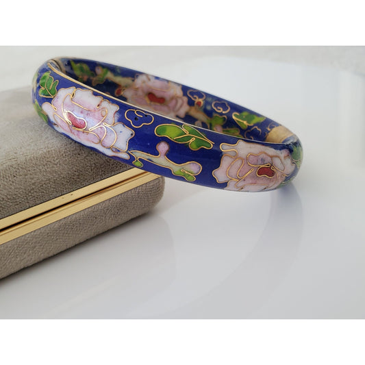 Vintage Blue Floral Cloisonne Bangle Bracelet