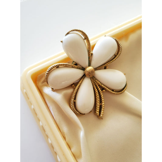 Vintage Crown Trifari Milk Glass Goldtone Daisy Brooch