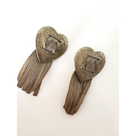 Vintage 1980s Southwestern Heart Engraved Stud Earrings