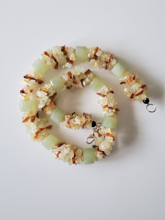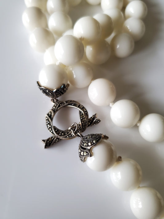White Glass Bead Necklace and Earring Set with Marcasite Detailing