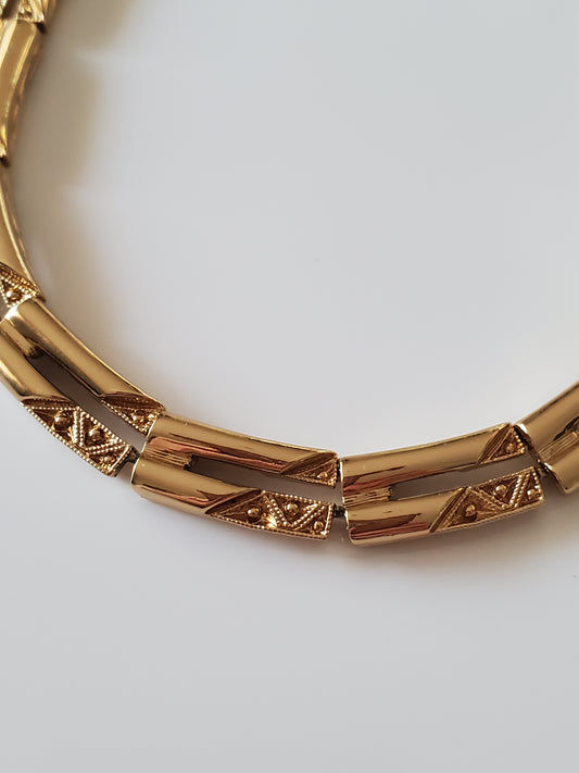 Vintage Monet Gold Tone Long Rectangle Link Choker Necklace