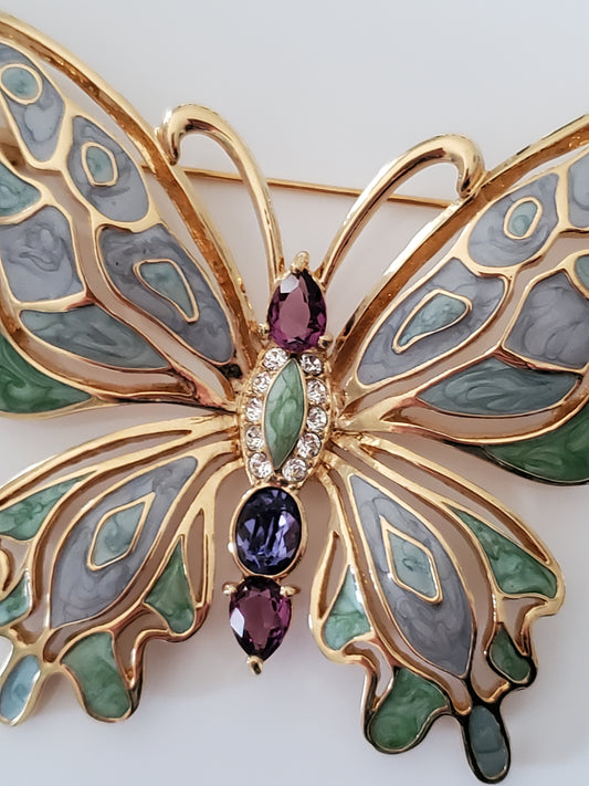 Bob Mackie Pastel Blue Green 3.75 in Enamel Butterfly Brooch