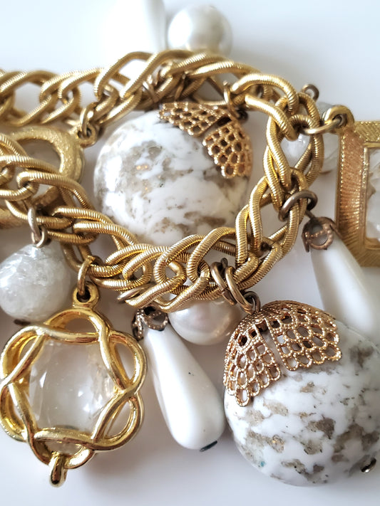 Vintage Chunky Goldtone Bracelet with Beads and Crystal Charms