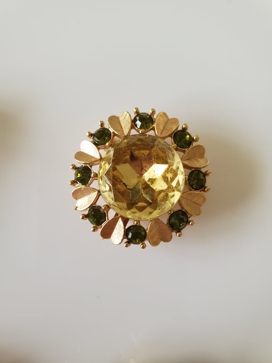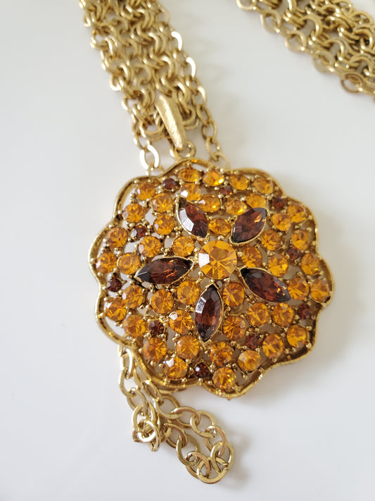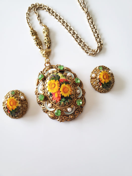 Vintage 1940s West Germany Designer Sunflower and Rhinestone Necklace and Earring Set