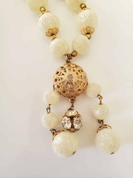 Vintage Mid-century Plastic Metallic Gold Beaded Lariat Necklace
