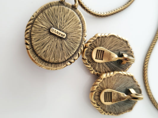 Vintage Monet Blue Carbochan Necklace and Earring Set