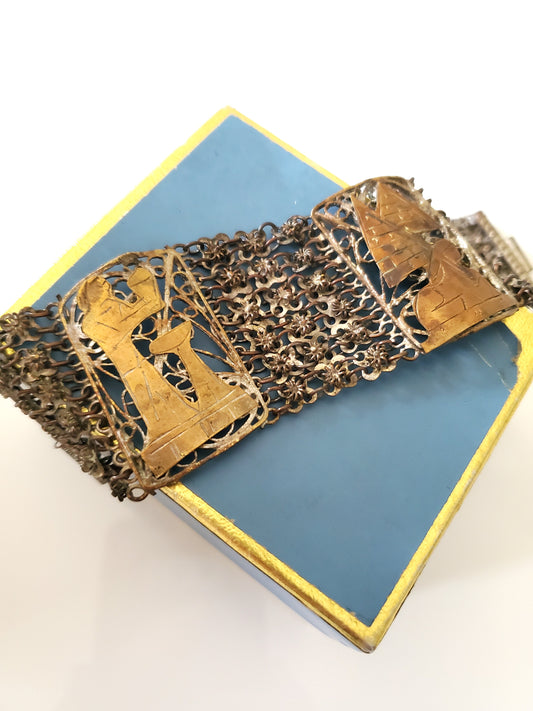 Vintage Silver and Brass Egyptian Filigree Bracelet