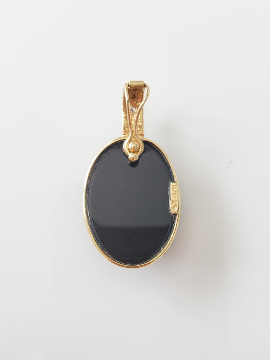 Vintage 14K Gold Onyx Oval Carbochan Snap-on Pendant