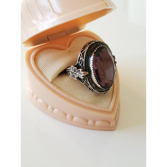 Vintage Art Deco Sterling Silver Amethyst Filigree Ring