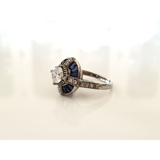 Sterling Silver Meda CZ and Blue Halo Stone Ring