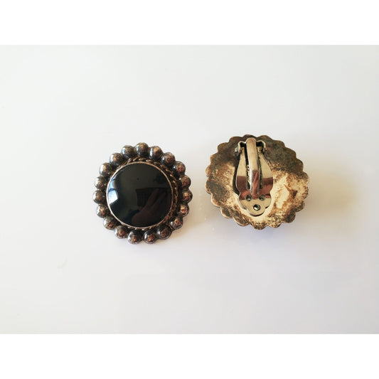 Vintage Large Sterling Silver Mexico Onyx Clip On Earrings Project