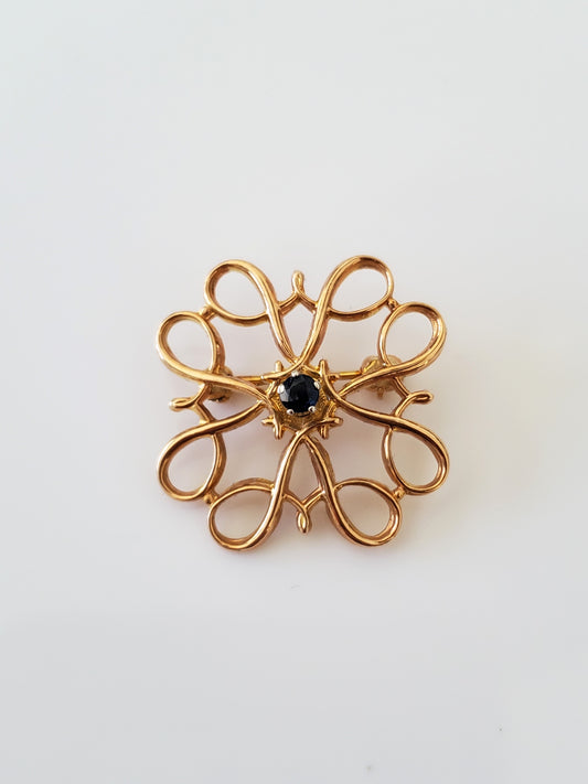 Vintage 10k Yellow Gold Blue Stone Pin Avon President’s Club Award Brooch