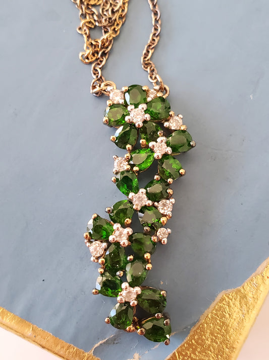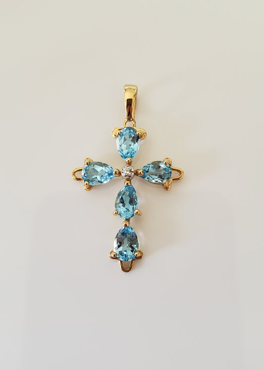 Vintage 14K Solid Gold Topaz and Diamond Cross Pendant