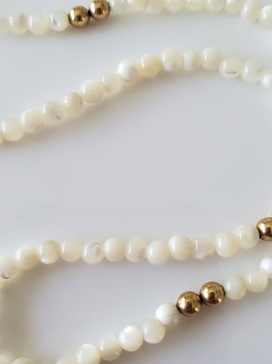 Vintage Mother of Pearl and Gold Beaded Necklace