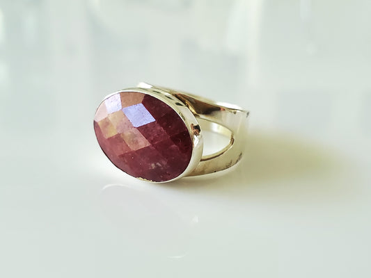 Sterling Silver East West Ruby Ring