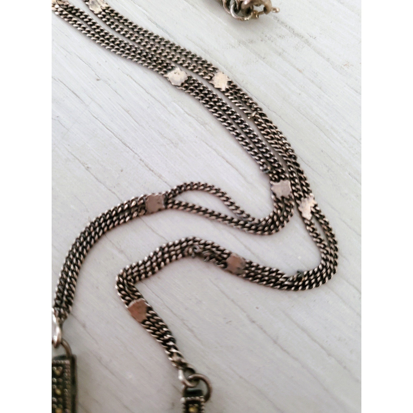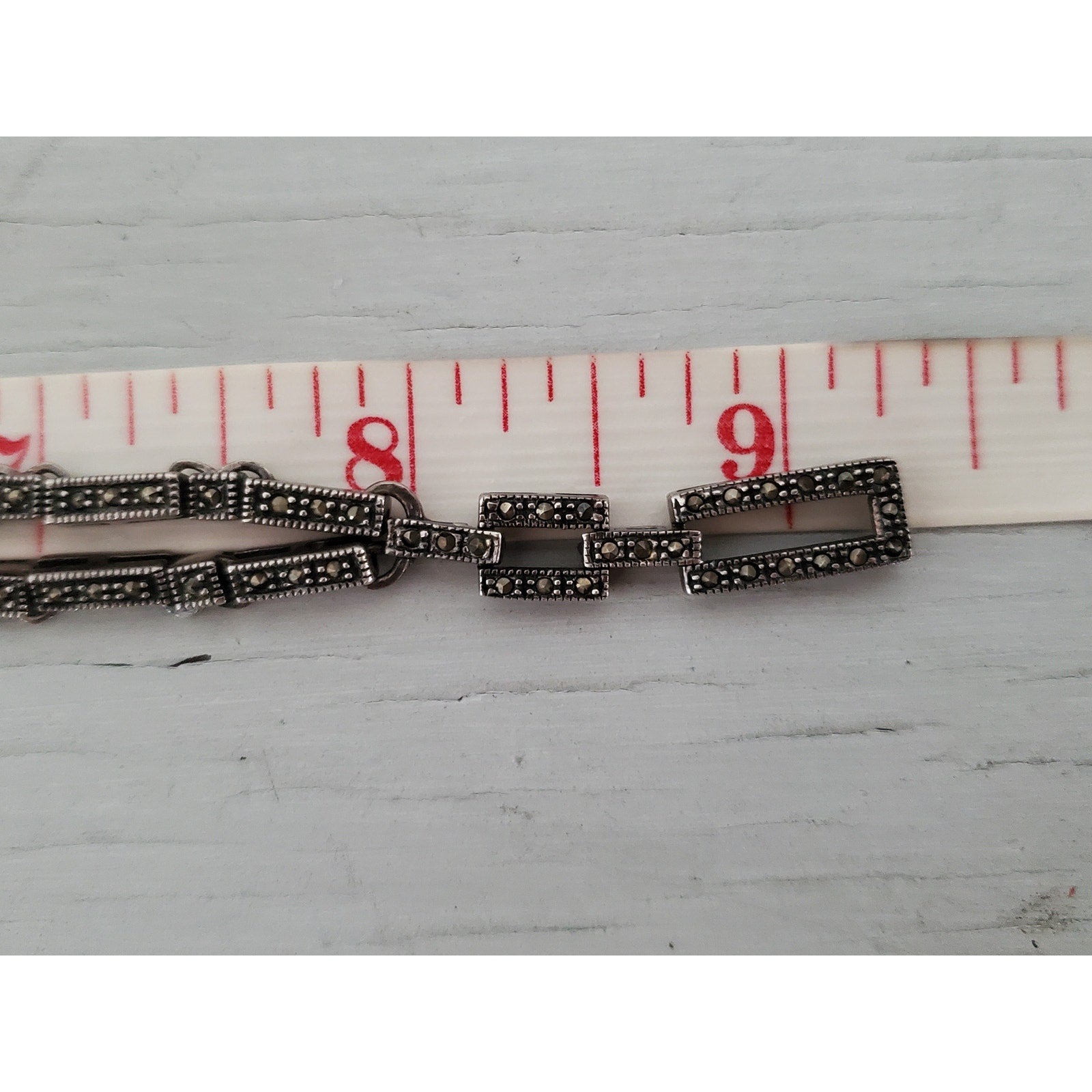 Modernist Sterling Silver Marcasite Lariat Necklace