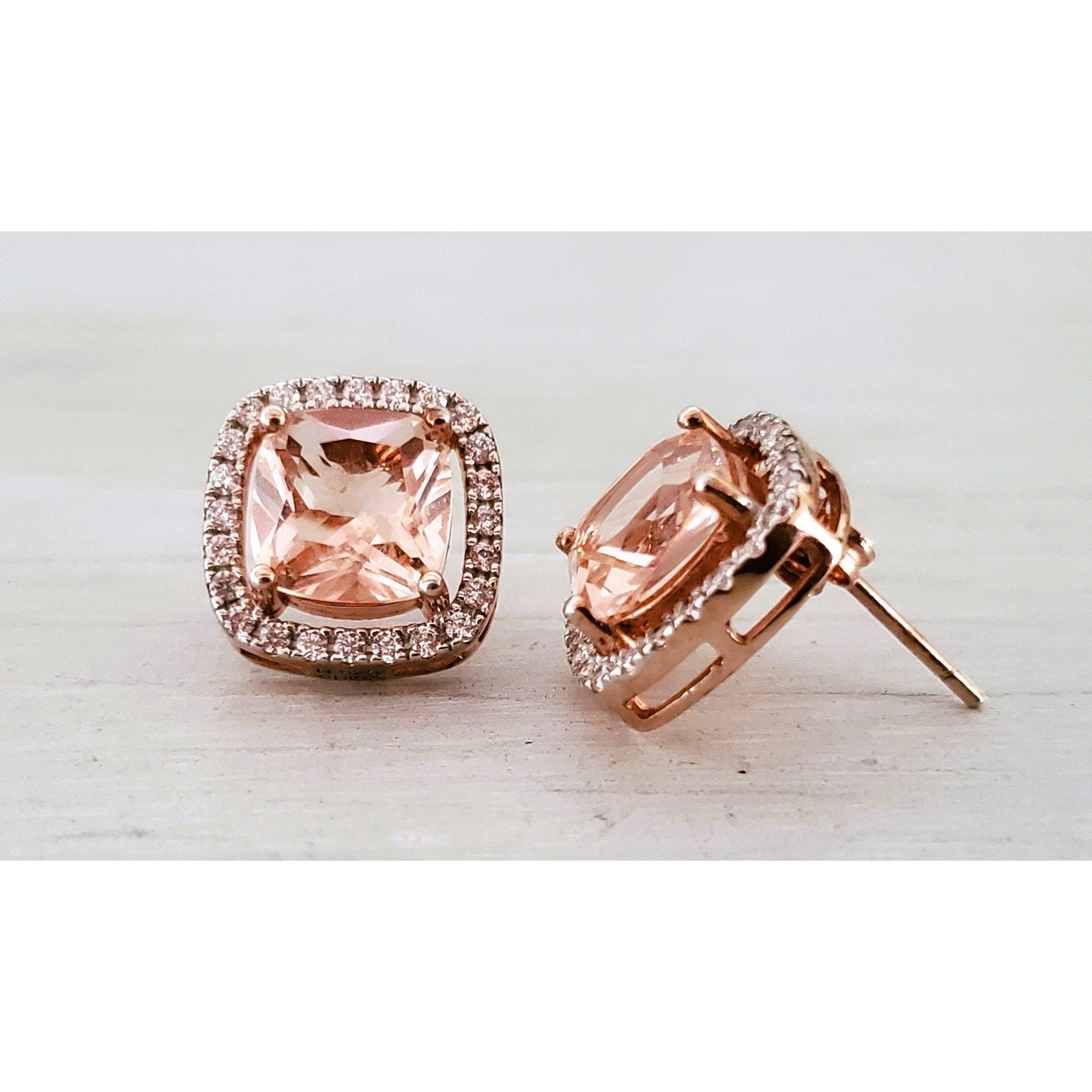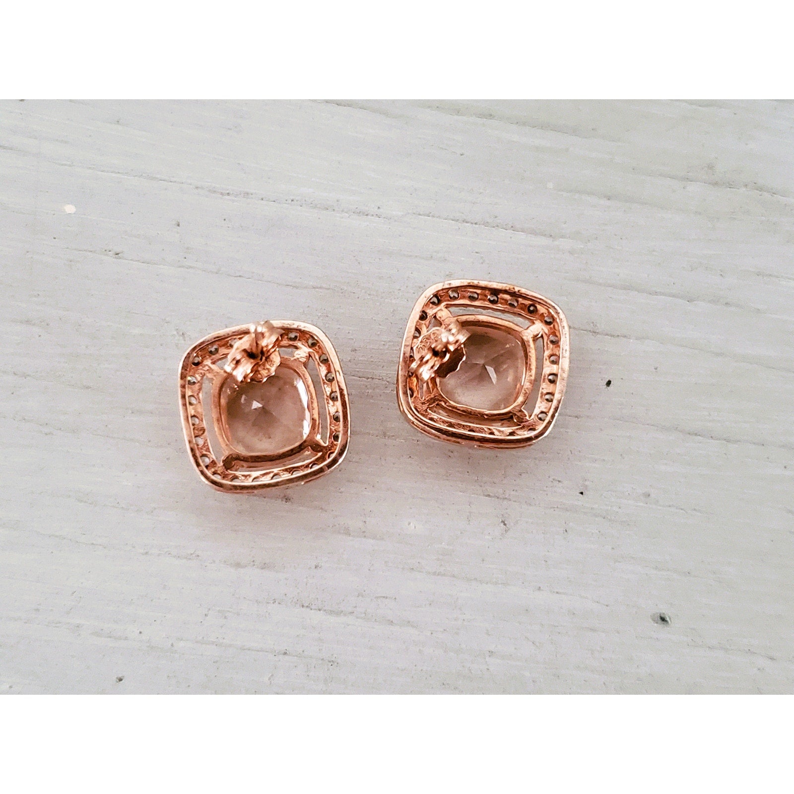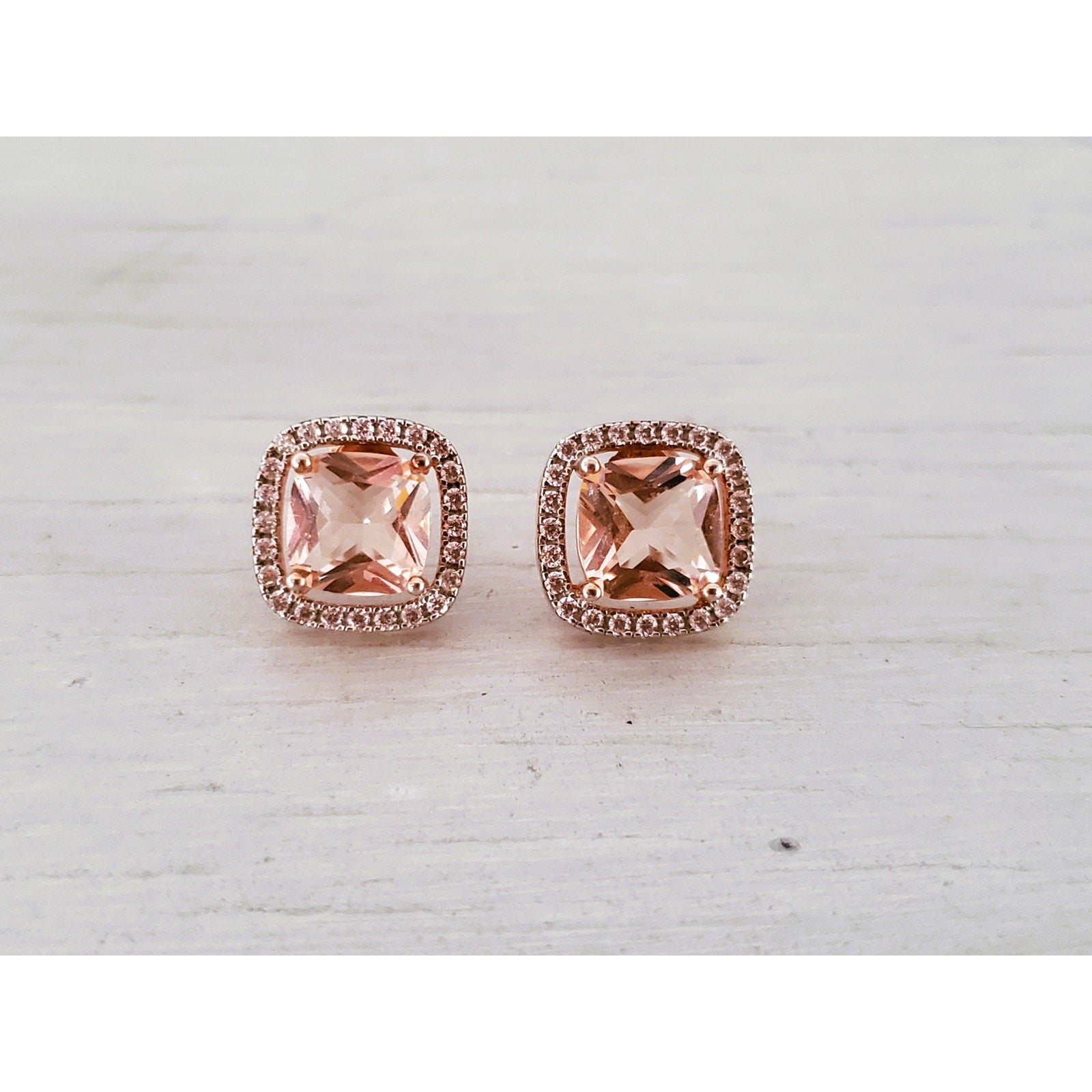 Morganite and CZ Sterling Silver Stud Earrings