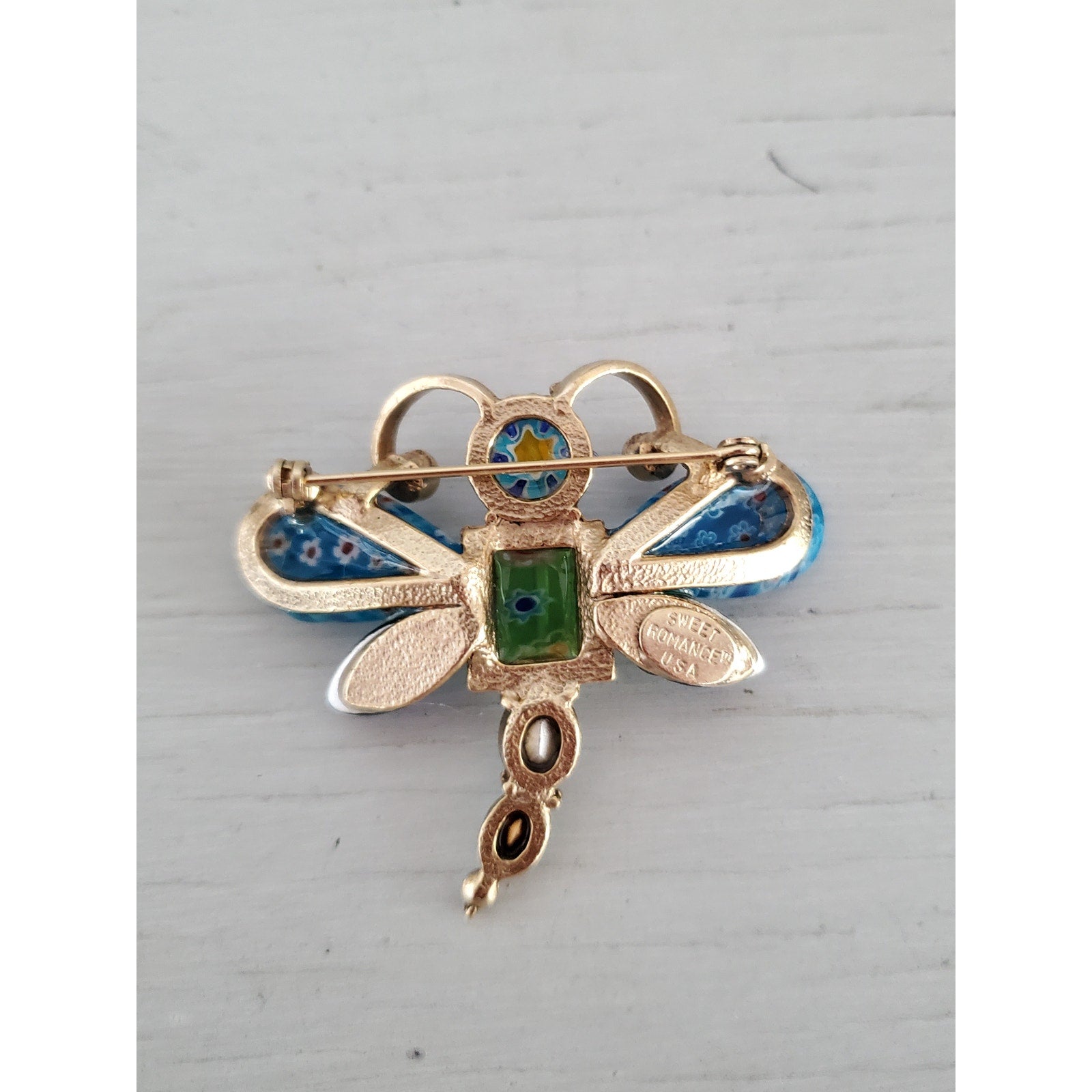 SWEET ROMANCE Millefiori Glass Butterfly Pin Brooch