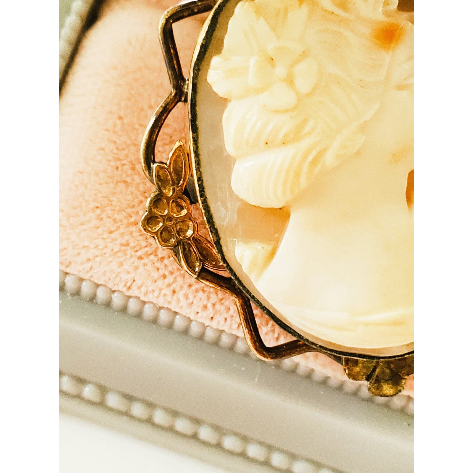 Vintage 12K Gold Filled Hand Carved Cameo Shell Brooch Pendant