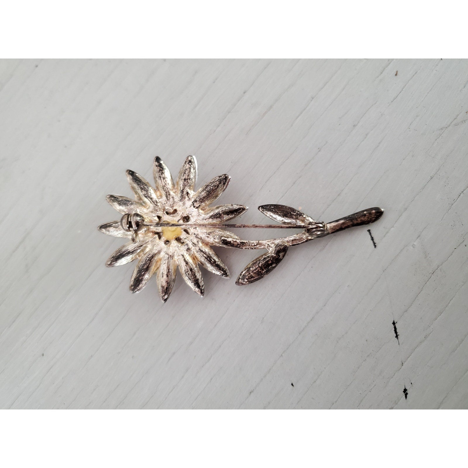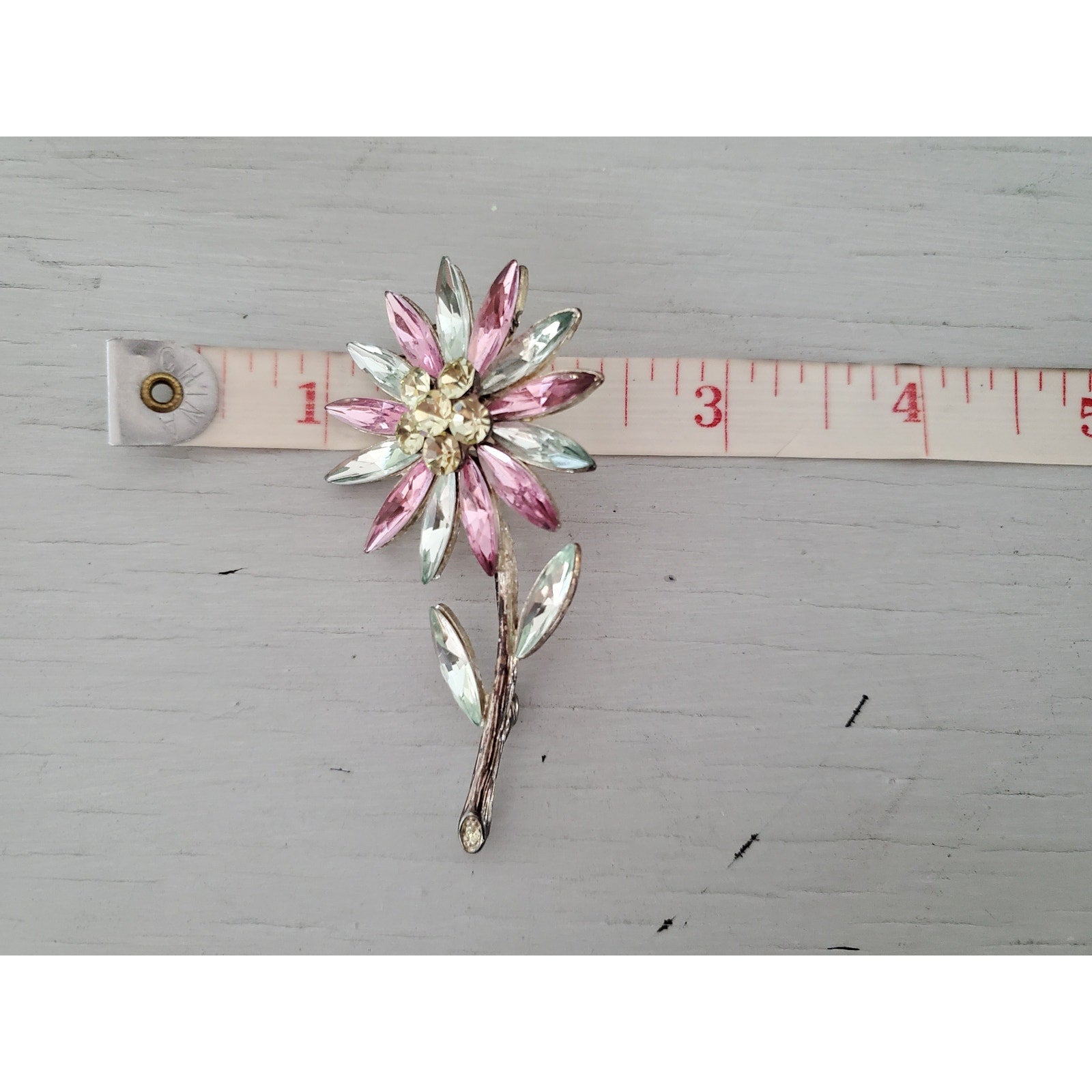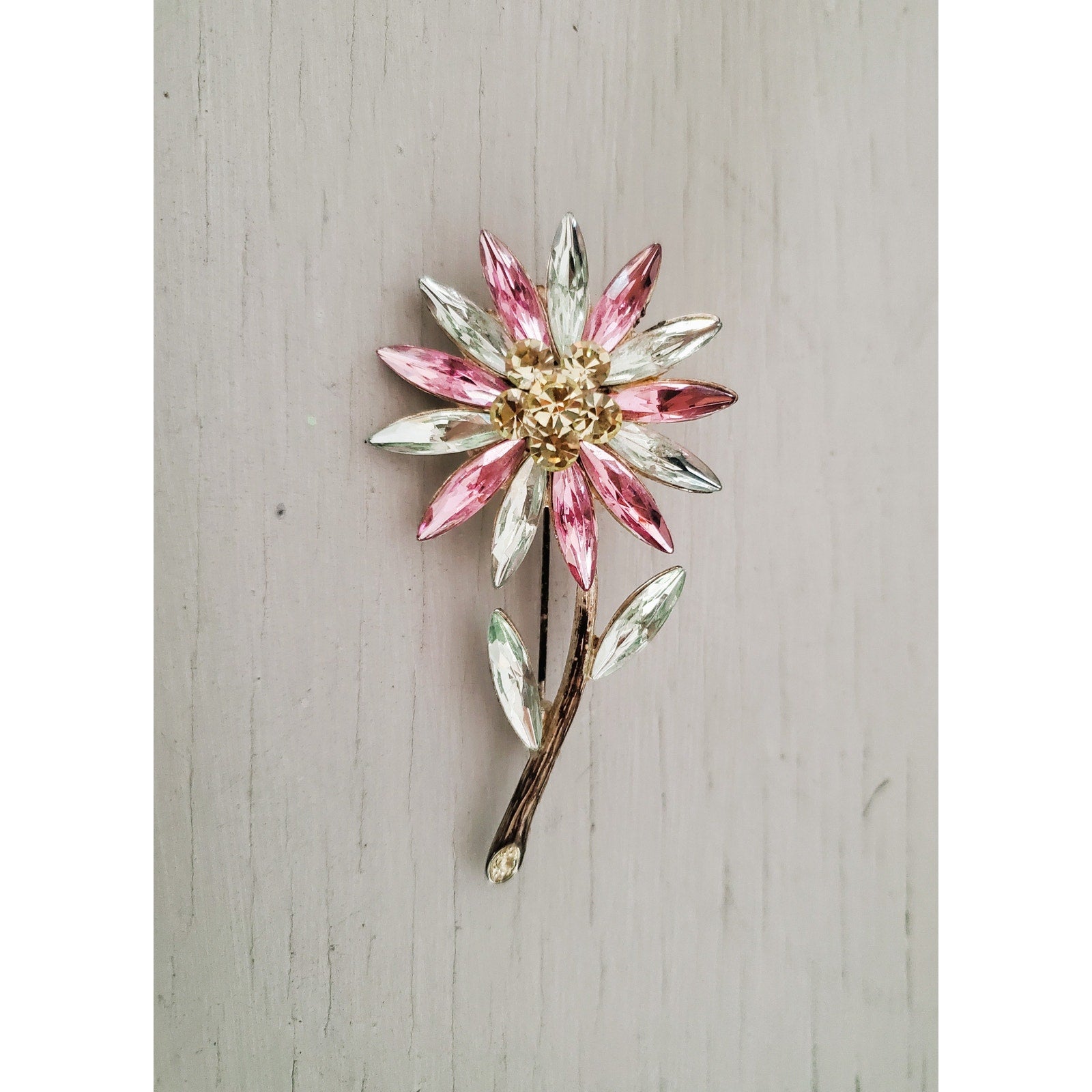 Vintage Pastel Rhinestone Daisy Brooch Pin