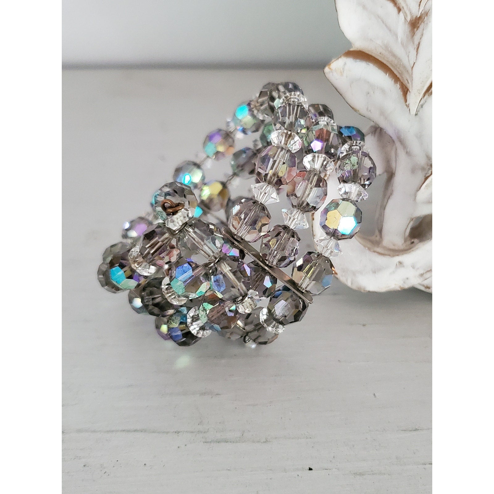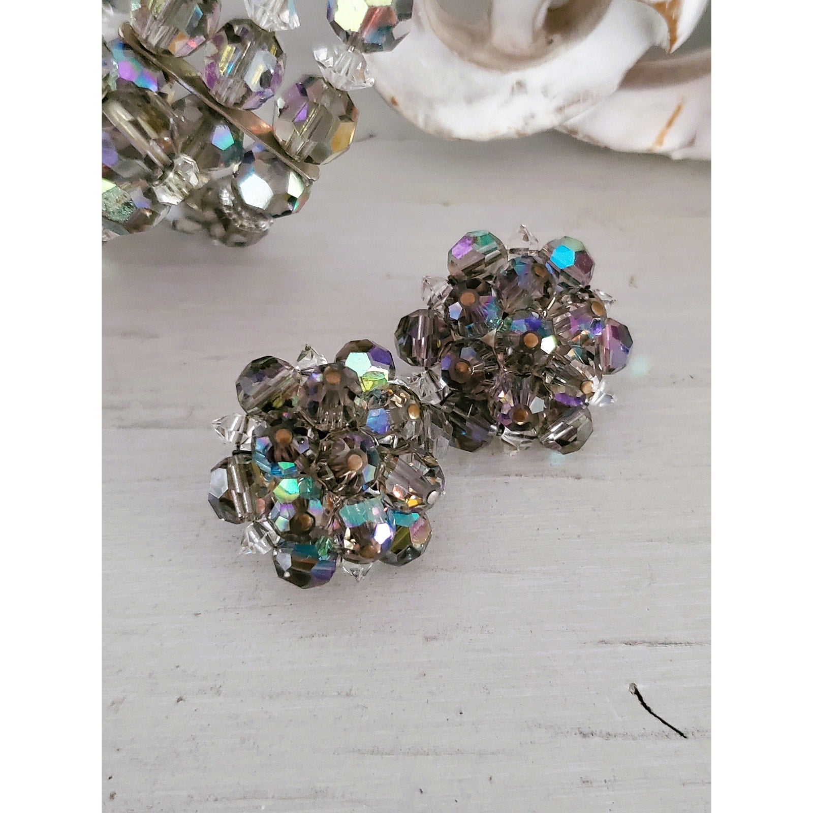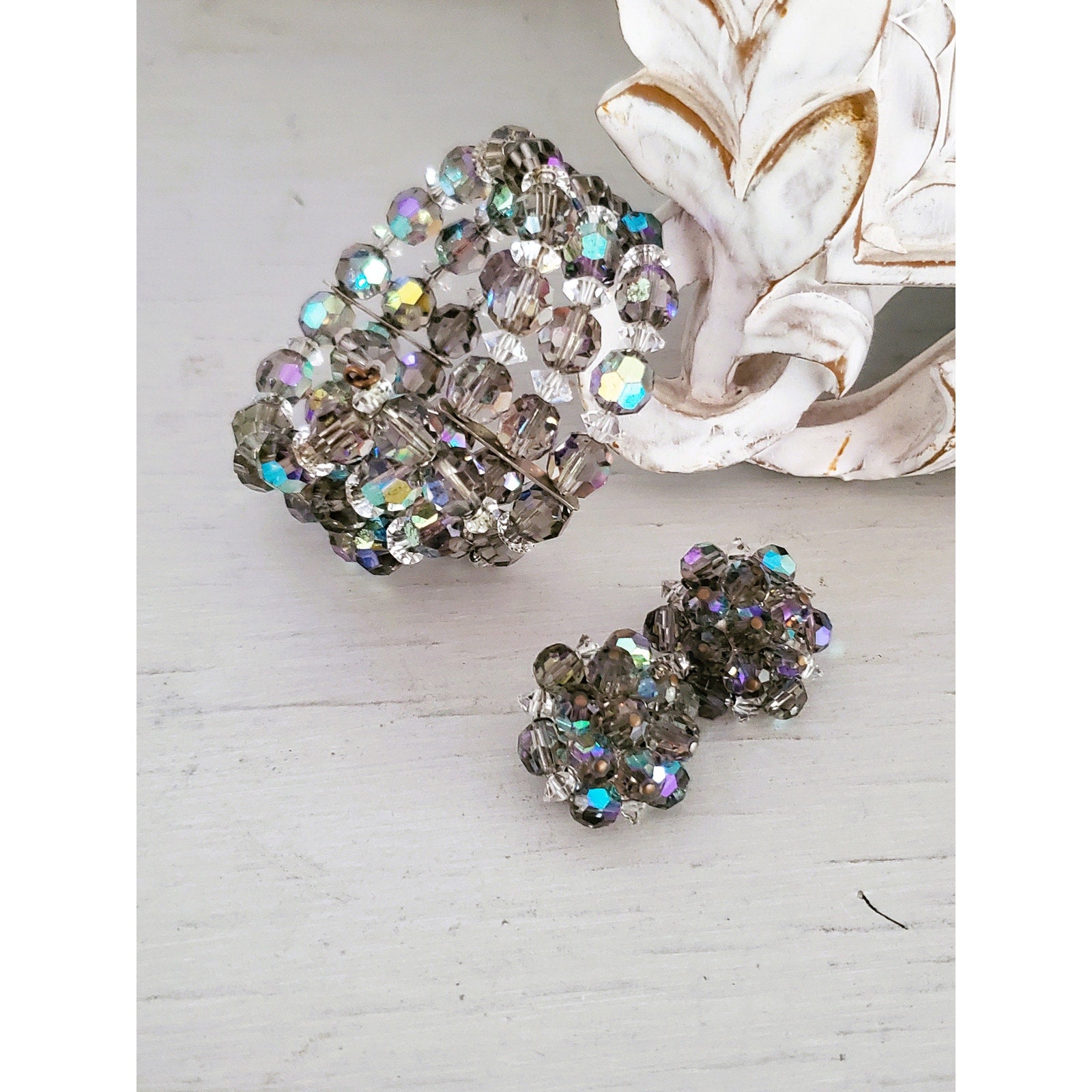 Vintage Smokey Crystal Bracelet and Earring Jewelry Set