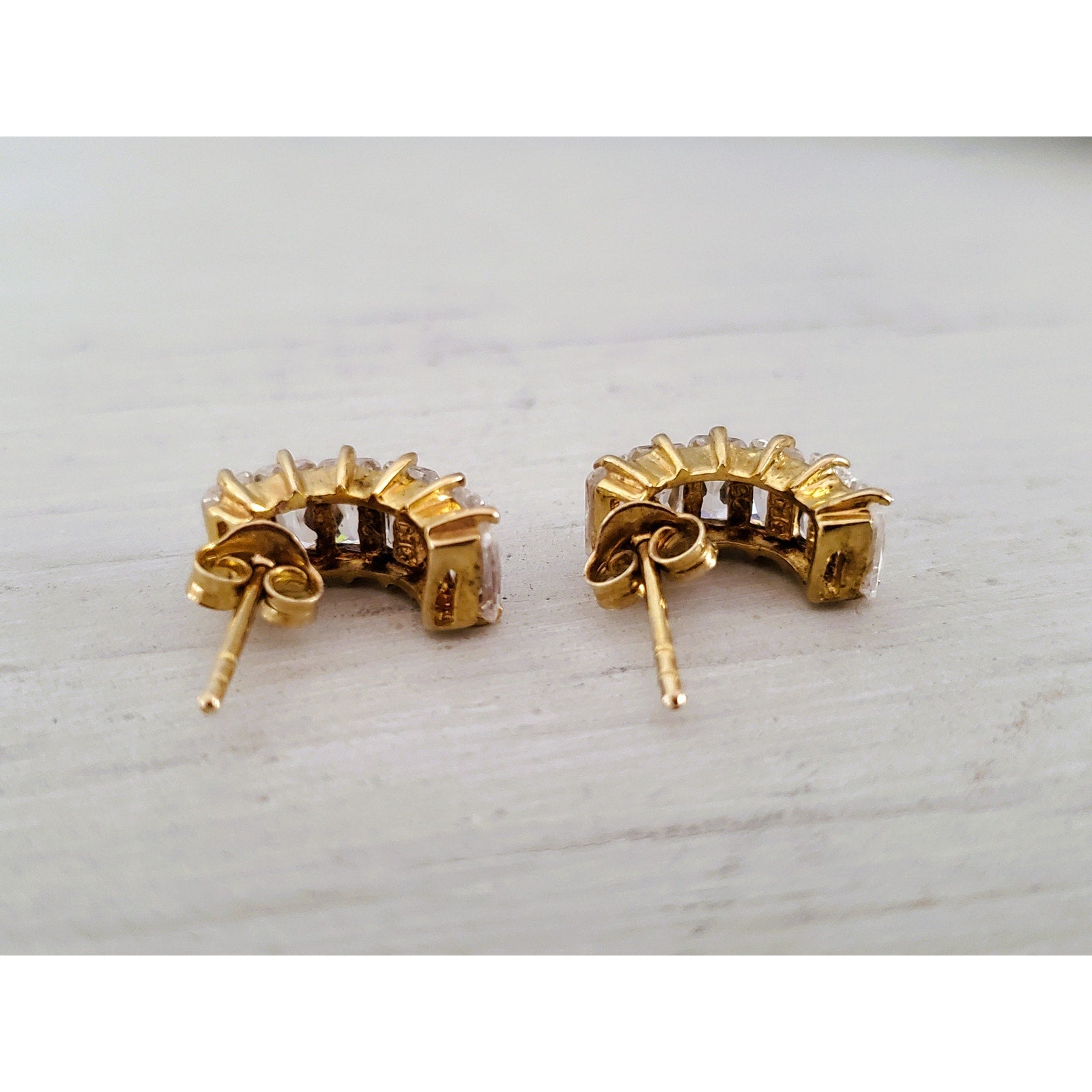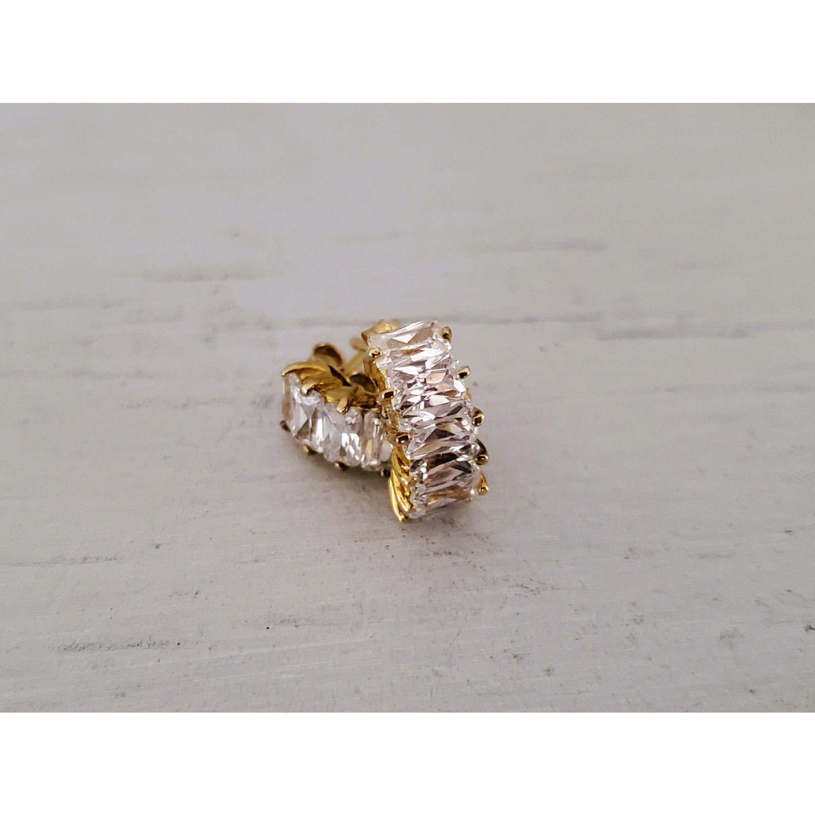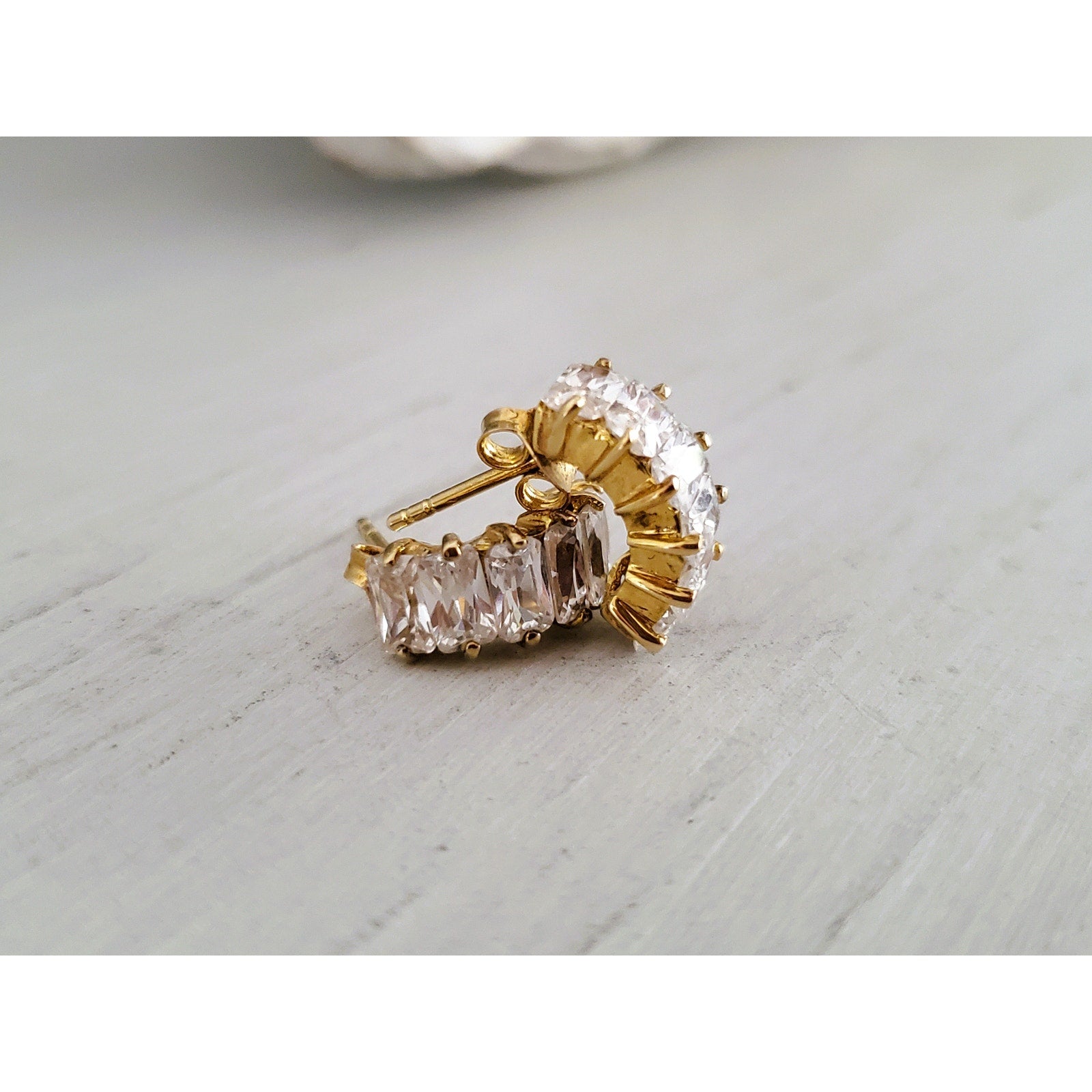 Vintage Sterling Silver Baguette CZ Half Hoop Earrings