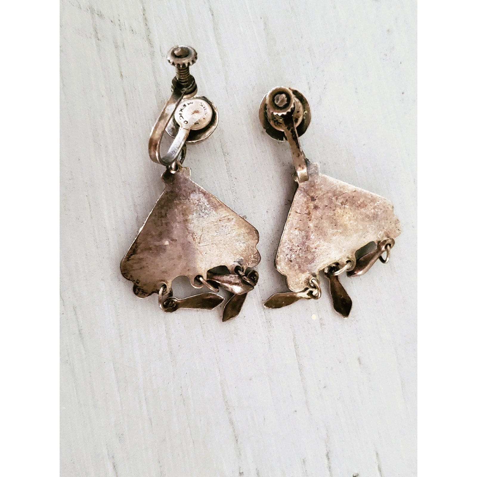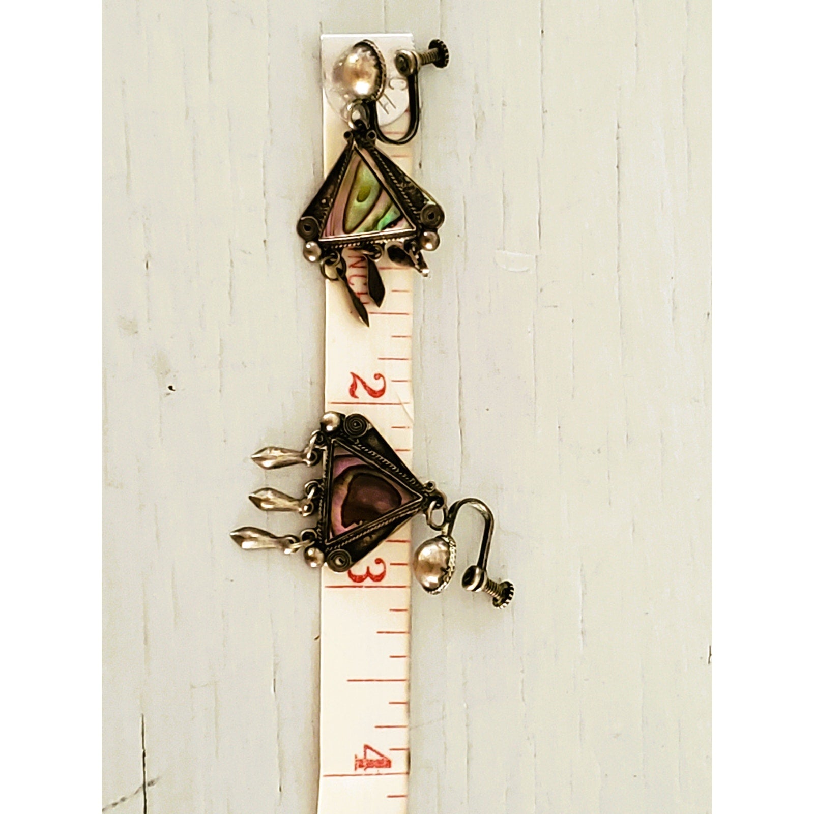 Vintage Sterling Silver Mother of Pearl Dangle Screw On Earrings