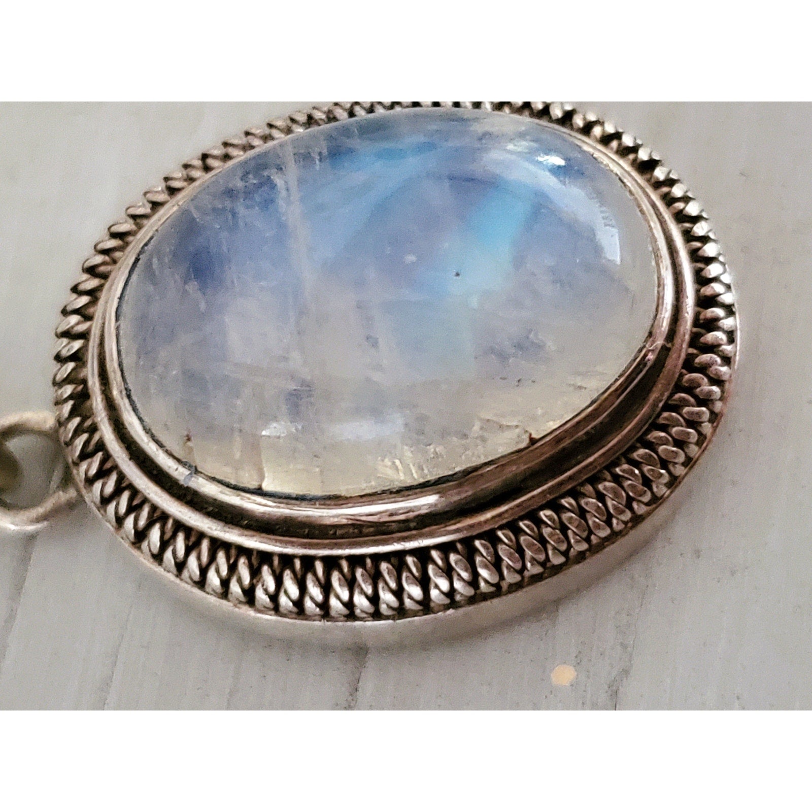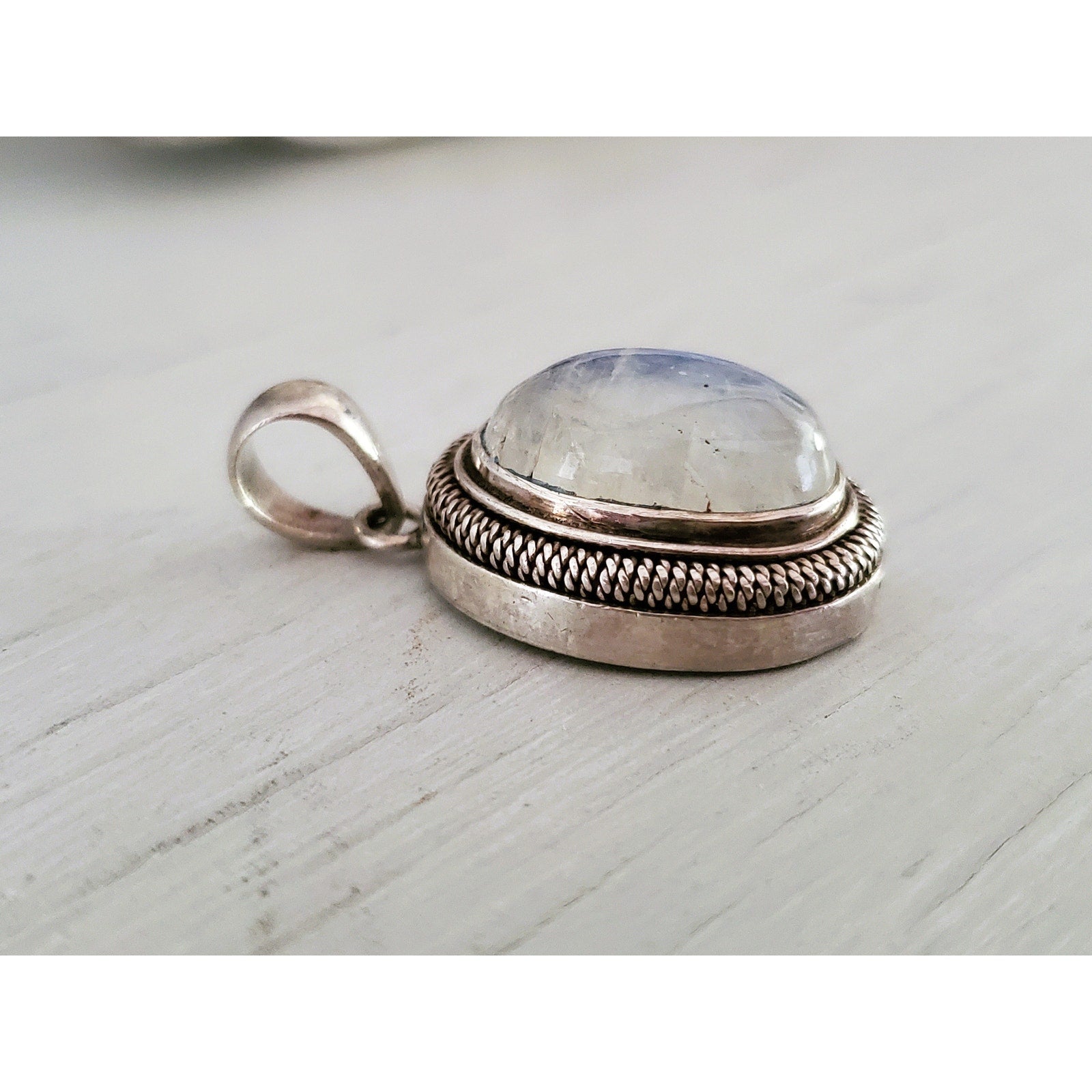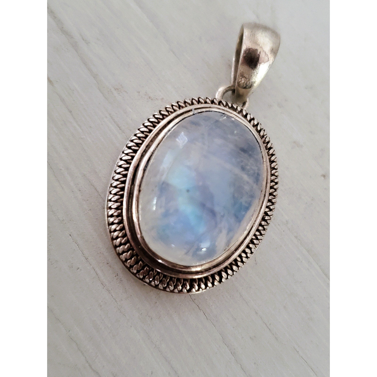Vintage Sterling Silver Oval Moonstone Pendant