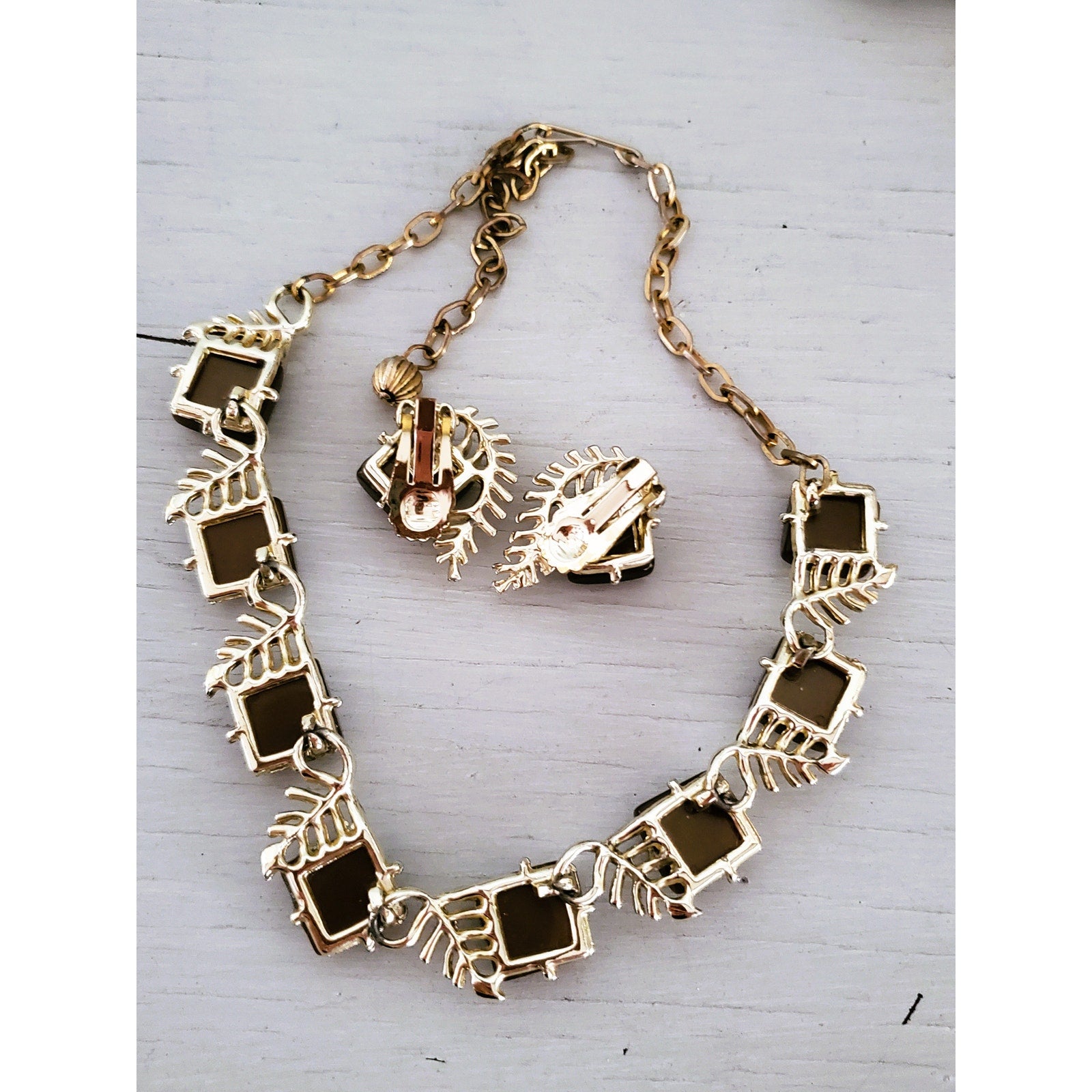 Vintage Thermoset Moonglow Chocolate Brown Necklace and Earrings Jewelry Set